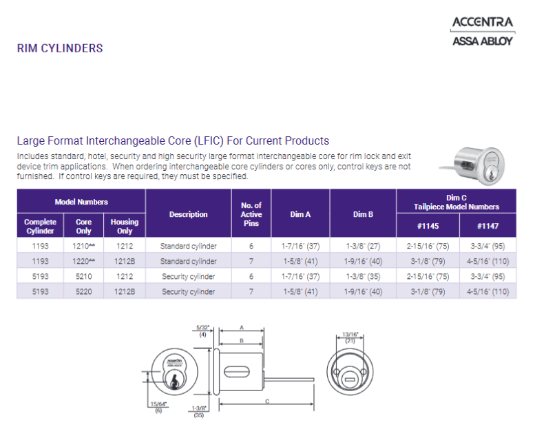 Accentra 1212 / 1212B LFIC Rim Cylinder Housing
