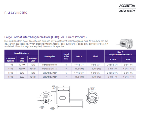 Decrease quantity for Accentra 1212 / 1212B LFIC Rim Cylinder Housing