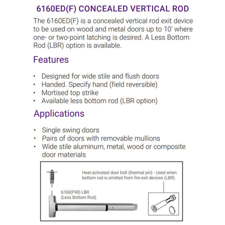 Accentra 6160ED Series Concealed Vertical Rod Exit Device