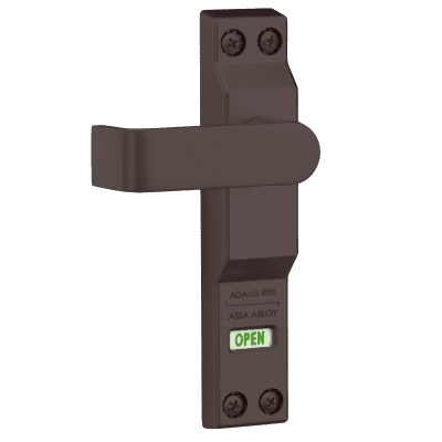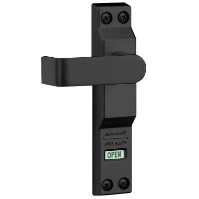Easy unlocking of most MS Deadlocks by approximately 3 lbs [1.36 kg] downward force on a 3" [76.2 mm] lever. Lever is spring loaded to horizontal, relocks with upward motion. Indicator signals lock status. Can be installed in place of existing key cylinder or cylinder type thumbturn on inside of door. 4550 Deadlock Lever not compatible with 7/8" [22.2 mm] backset locks.
