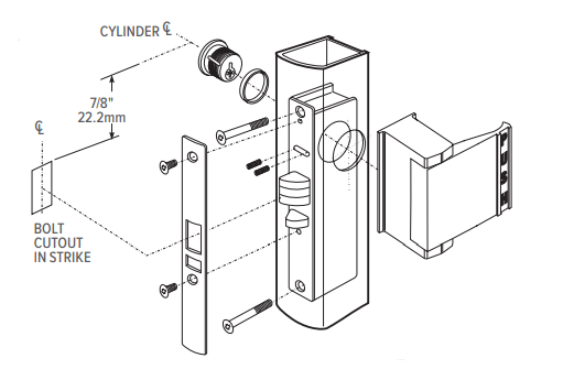 Standard Package: Individually boxed with strike and mounting screws. Cylinder, paddle, handle available separately.