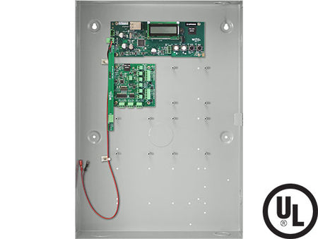 The ACS-2DR-C starter kit is a 2-8 door master door controller which includes the AC-C, a steel ventilated and lockable enclosure, a master door control board, and a two-door relay control board. Each door has two dry contacts and one wet contact for door release.