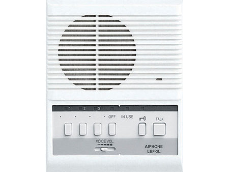 The LEF-3L is a selective calling open voice style master station with selective door release capability with a maximum capacity of four stations, including itself.