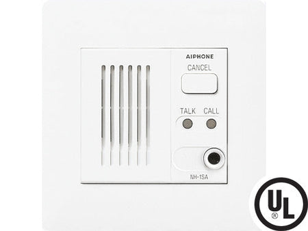 A UL Listed single-jack bedside audio sub station for hands-free calling and communication. Use with the NHR-8C, a bedside call button that triggers an urgent call to the master when a cord-out activates, and a routine call when a button activates. Use with the Nurse Call NHX Series.