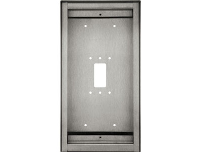 The SBX-IXGDM7 is the surface mounting box used to mount the IXG-DM7-HID, IX-DVF-10KP, IX-DVF-4A, and IX-DVF-6. The box has a 1-gang and 2-gang mounting hole pattern in the back and 1 conduit knockout in bottom.