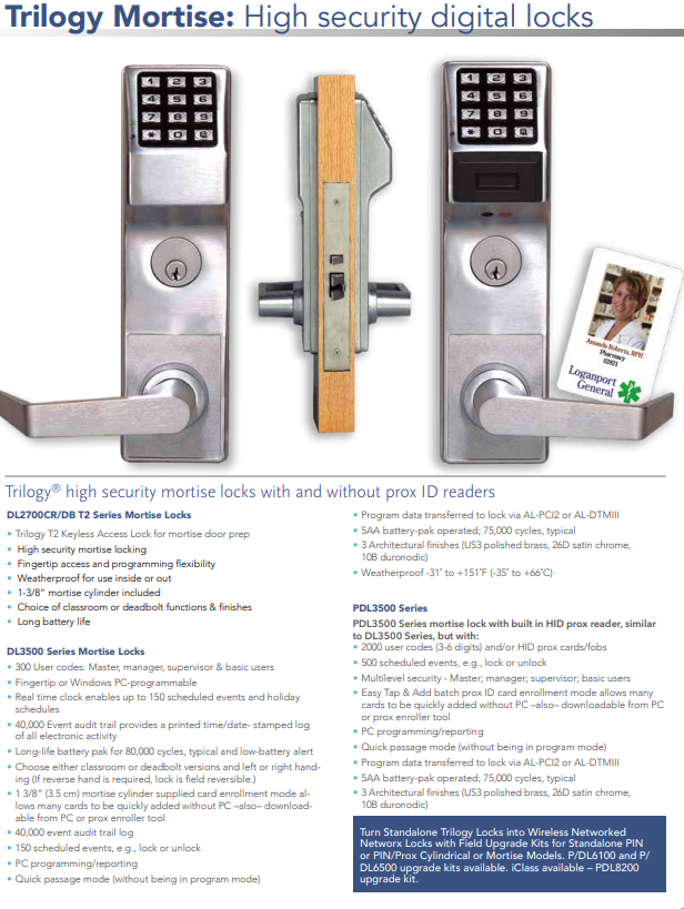 Trilogy T2 Keyless Access Lock for mortise door prep