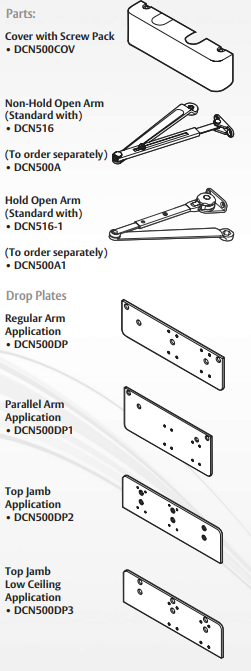 DCN5xx-1 Series door closers are supplied with a hold open arm.