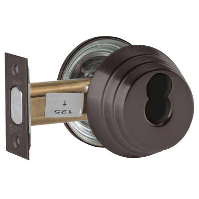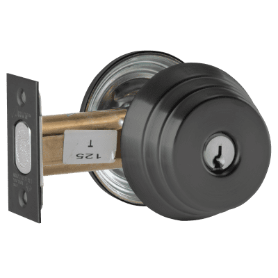 Deadbolt indicator thumb turn is available as an option on the E61 single cylinder deadbolt
