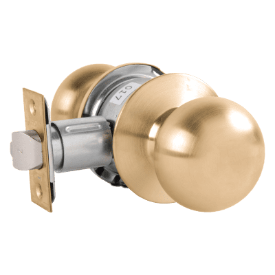 Latch: Brass with 1/2" (12.7 mm) throw. Latch housing is steel, with zinc dichromate finish for corrosion resistance. 7/8" (22.225 mm) bore in edge of door is required.