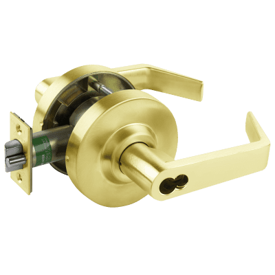 The double cylinder 97 Function ‘Classroom Intruder’ function uses a key to lock and unlock the door from the outside for opening or closing the classroom. In an emergency situation, it allows the teacher to use their key to lock the outside lever from inside the classroom thereby preventing unauthorized entry. Because it requires a key, it prevents the students from accidentally locking the teacher out of the classroom. The inside lever is always free for emergency egress.