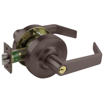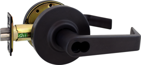 The double cylinder 97 Function ‘Classroom Intruder’ function uses a key to lock and unlock the door from the outside for opening or closing the classroom. In an emergency situation, it allows the teacher to use their key to lock the outside lever from inside the classroom thereby preventing unauthorized entry. Because it requires a key, it prevents the students from accidentally locking the teacher out of the classroom. The inside lever is always free for emergency egress.