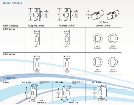 Strike: 4-7/8" ANSI (123.83mm), 2-3/4" (69.85mm) T strike, or 2-1/4" (57.15mm) full lip strike.
