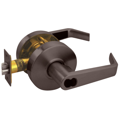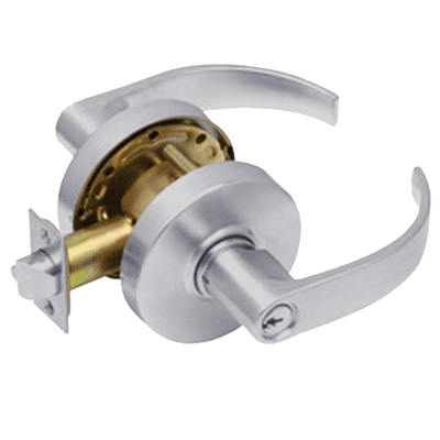 Cylinder: Conventional - Solid brass 6 pin. Arrow "A" keyway standard. C keyway optional. Interchangeable Core – Lockset prepared to use with 6 or 7 pin interchangeable core. Will accept cores manufactured by Arrow, Best, Falcon, Medeco Keymark, ASSA, and others.*