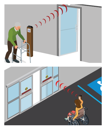 Offers a means of activation of automatic doors for these with limited mobility or disabilities