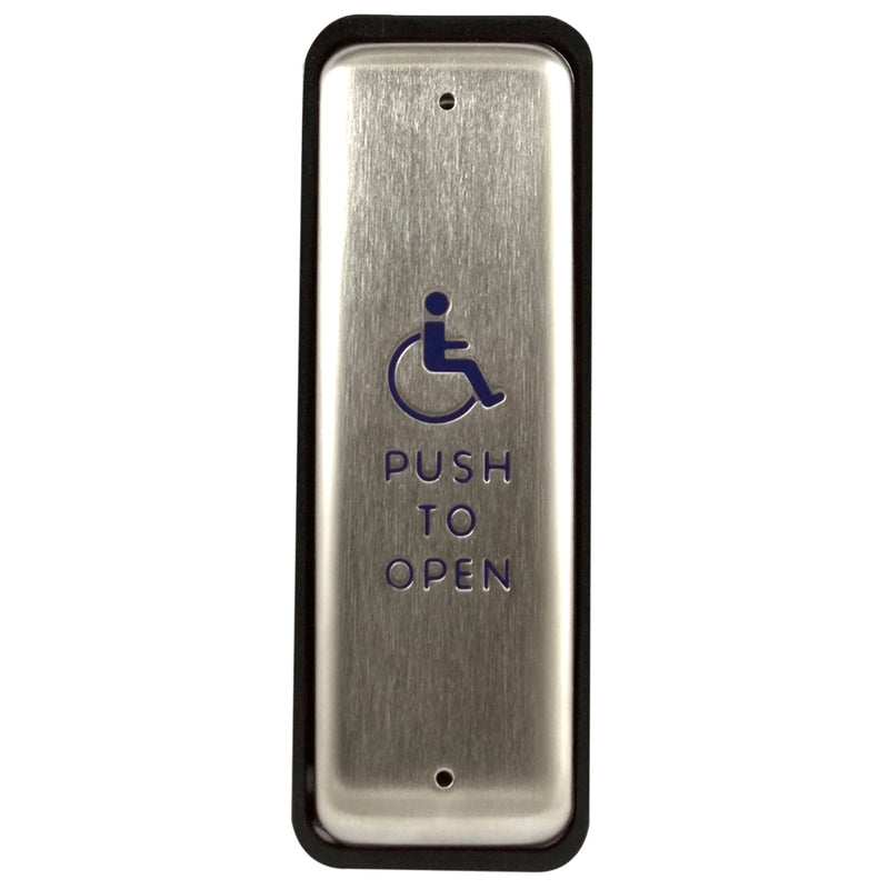 BEA 10PBJ1 Stainless steel push plate, 1.5 In. by 4.75 In., in jamb plate, blue hadicap logo and text