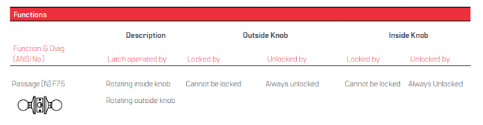 Lock and latchsets: Sets consist of latch complete with trim. Type and operation according to set number. Set also includes interchangeable core and two nickel silver keys, keyed to your system.