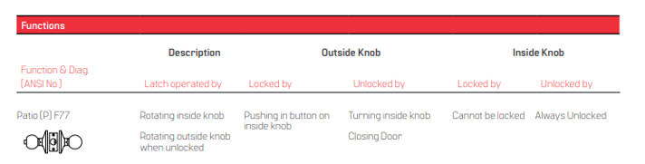 BEST 6K (P) Patio Function Grade 2 Non-Keyed Knob Locks