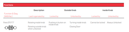 Lock and latchsets: Sets consist of latch complete with trim. Type and operation according to set number. Set also includes interchangeable core and two nickel silver keys, keyed to your system.