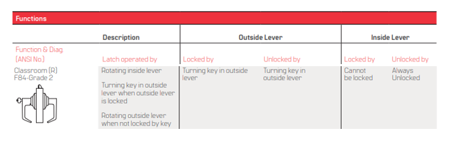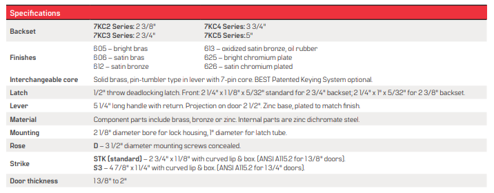 BEST 7KC (R) Classroom Function Single Cylinder Grade 2 Medium Duty Lever Locks