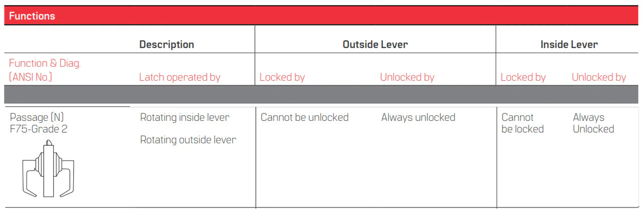 BEST 7KC (N) Passage Function Non-Keyed Grade 2 Medium Duty Lever Locks