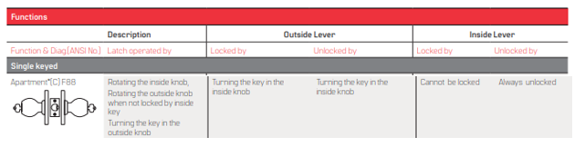 - Keyed knob removable only after the core is removed.
