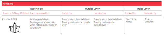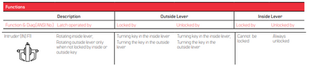 - The innovative design of the slotted key release cam and locking lug assembly create maximum attack resistance. Even though damaged, the lock still allows key access. In addition, the lever is fully functional from the inside. The hub-mounted torsion spring and strong retractor springs help prevent lever sag and offer a smooth and snappy operation.