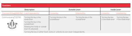 - The innovative design of the slotted key release cam and locking lug assembly create maximum attack resistance. Even though damaged, the lock still allows key access. In addition, the lever is fully functional from the inside. The hub-mounted torsion spring and strong retractor springs help prevent lever sag and offer a smooth and snappy operation.