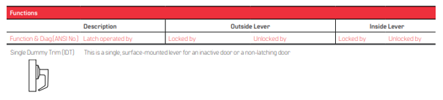 BEST 9K (1DT) Single Dummy Trim Function - Grade 1 Cylindrical Non-Keyed Non-Latching Lever Lock
