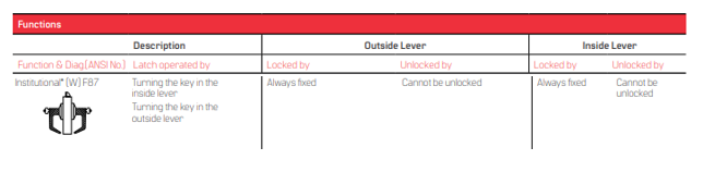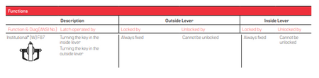 - The innovative design of the slotted key release cam and locking lug assembly create maximum attack resistance. Even though damaged, the lock still allows key access. In addition, the lever is fully functional from the inside. The hub-mounted torsion spring and strong retractor springs help prevent lever sag and offer a smooth and snappy operation.