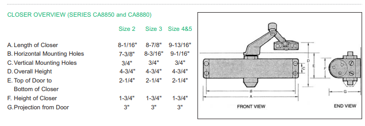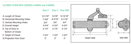 ■ CA8850/CA8880 door closers are contained in three