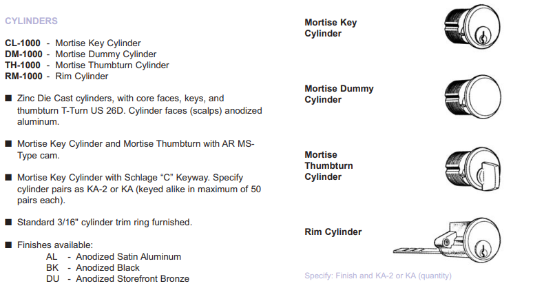 ■ Locks use standard 1-5/32" Mortise Key or Thumbturn Cylinders with