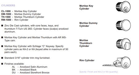 - Locks use standard 1-5/32" mortise key or thumbturn cylinders with AR MS-Type cam.