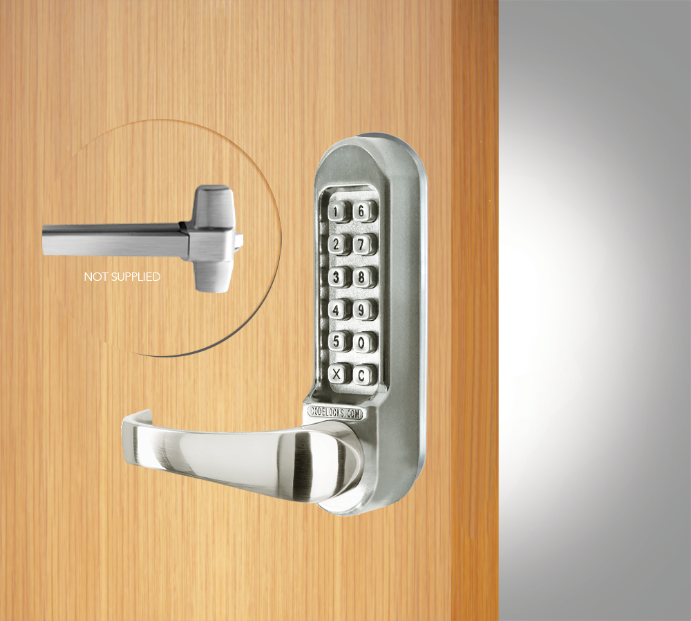 Heavy duty mechanical locks with large full size lever handles, allowing use as the primary lock on doors. An extra long spindle is provided to work with most single point panic pads or bars. The outside lever will retract the latch freely until disabled.