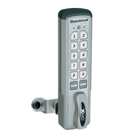 CompX RegulatoR, electronic push button cabinet lock with 1-3/16" cylinder length, vertical mount, manual version