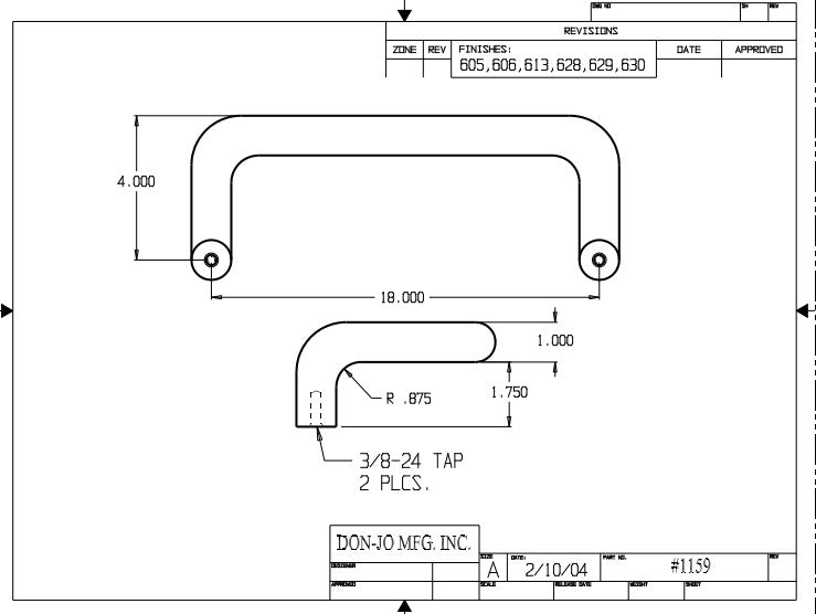 DON-JO 1159 Door Pull, 90 degrees Offset, 3-1/2" Projection, 2-1/2" Clearance