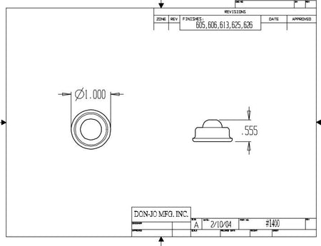 DON-JO 1400 Wall Bumper, 1/2" Projection, 1 Diameter, Brass Material