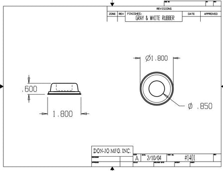 DON-JO 1401 Wall Bumper, 9/16" Projection, 1 13/16" Diameter, Rubber Material