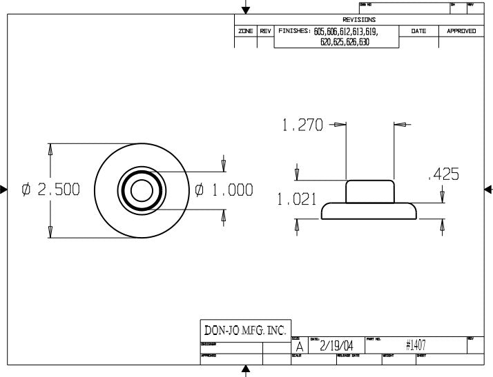 DON-JO 1407 Wall Bumper, 1" Projection, 2 1/2" Diameter, Wrought Material
