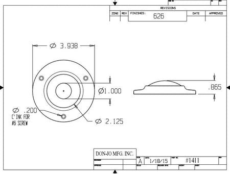 DON-JO 1411 Wall Bumper, 1" Projection, 3 7/8" Diameter, Cast Brass Material