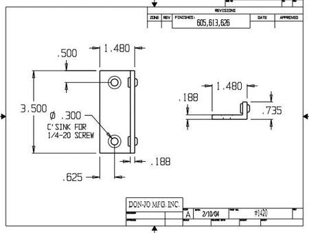 - Fasteners: 2 ea. #12 x 1-1/2" FFWS and 2 ea. 12-24 x 3/4" FHWS, For use with single or double doors without stops