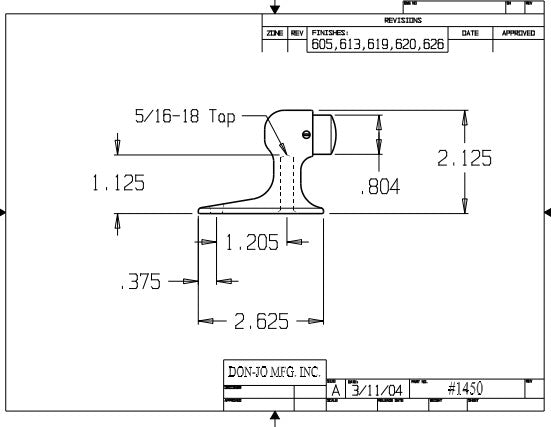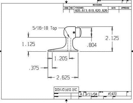 - Model 1450: 2-1/8" Height x 2-5/8" x 1-5/8" BaseFasteners 1 ea. 5/16-18 x 2-5/8" MS Stud, 1 ea. 5/16-18 x 2-5/8" SMS Stud, 1 ea. #10 x 1" SMS, 1 ea. Plastic Anchor, 1 ea. Lead Expansion Shield