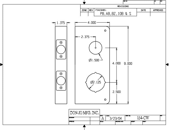 DON-JO 154 CW Wrap Around 4" x 9", 4" CTC, for Double Lock Combination
