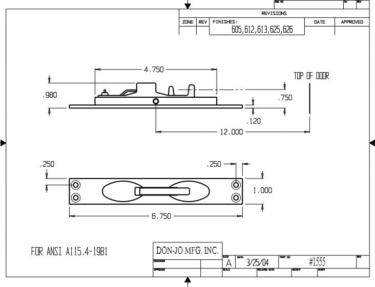 DON-JO 1555 Flush Bolt, 6-3/4" x 1", Cast Brass Material