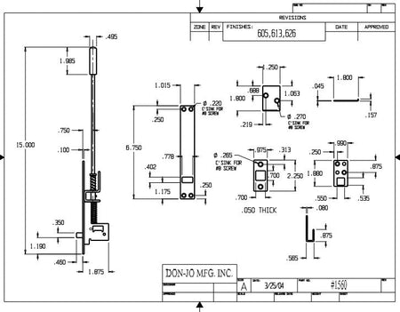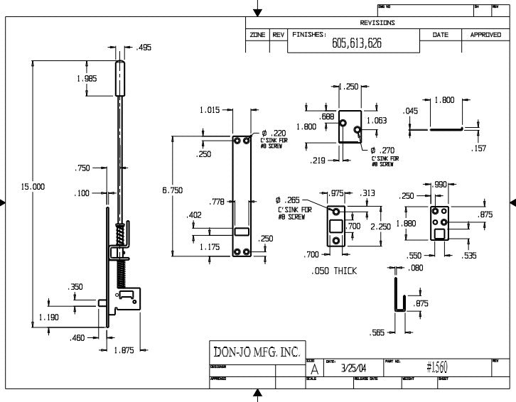 DON-JO 1560 Automatic Flush Bolt, 6-3/4" Length, Cast Brass Material