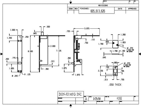DON-JO 1562 Automatic Flush Bolt, 8-1/2" Length, Cast Brass Material