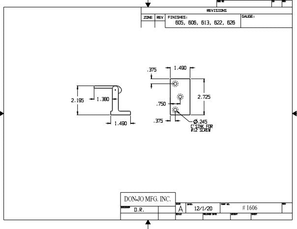 DON-JO 1606 Door Flip Guard, 3" L x 2 3/4" W x 2 1/4" H