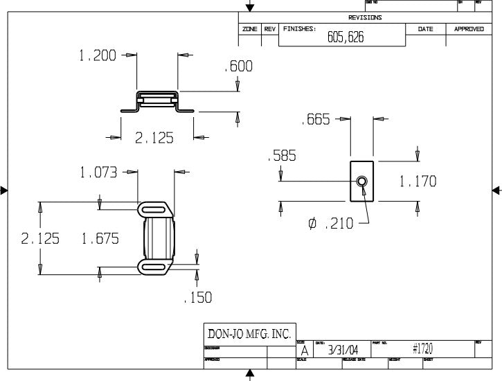 DON-JO 1720 Magnetic Catches, 2-1/16" Length, 5 lbs. Load Capacity, Brass