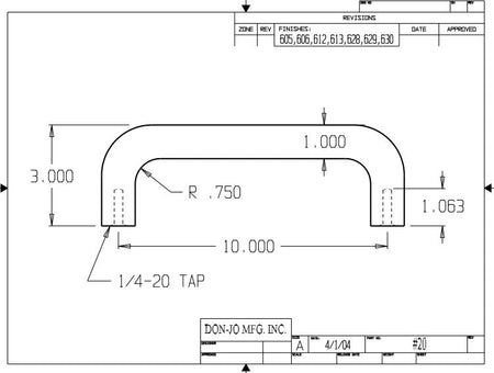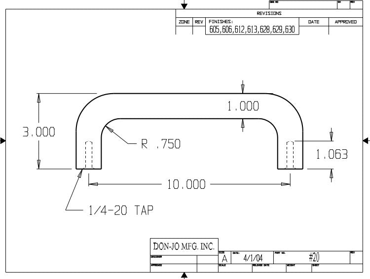 DON-JO 20 Door Pull, Cast, 10" CTC, 11" Overall, 3" Projection, 2" Clearance