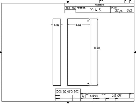 DON-JO 20B CW Blank Wrap Around 5-1/8"x 20", 1-3/4" Door Size