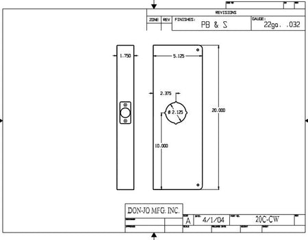 DON-JO 20C CW Wrap Around 5-1/8" x 20", 2-3/8" Backset, 1-3/4" Door Size